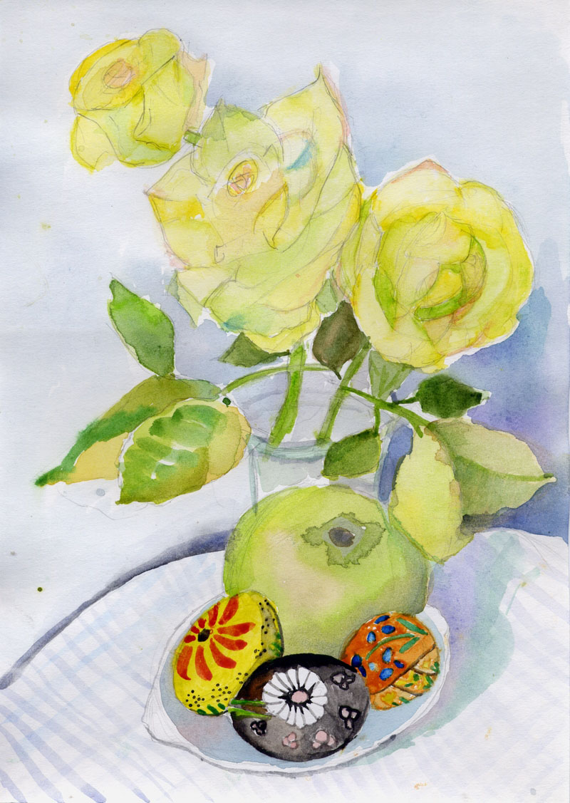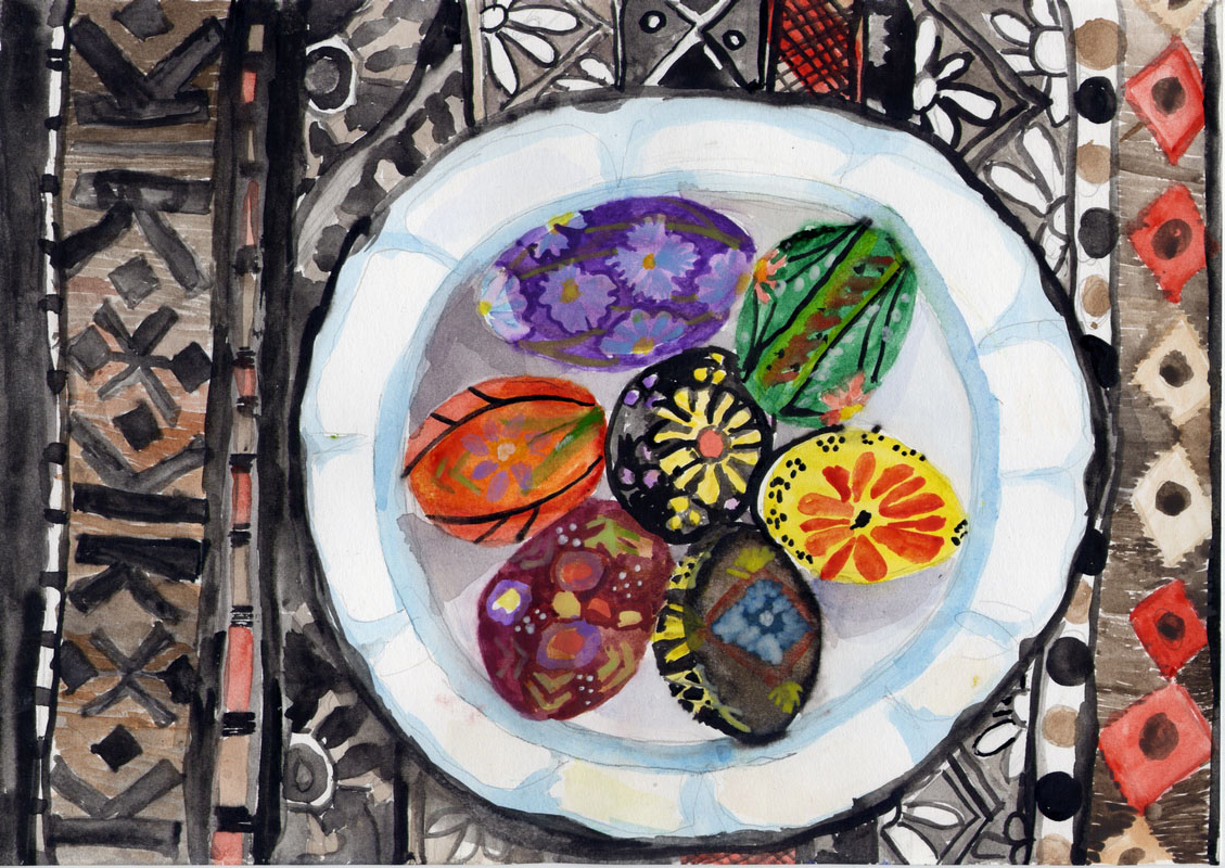 Специально для конкурса «Золотой мольберт» Полина сделала натюрморты с украинскими писанками.